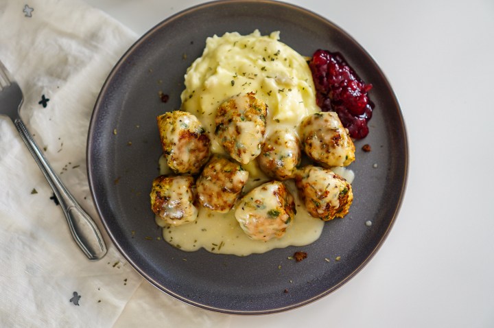 Blogging is not easy. Cooking is easier. It’s a little exhausting to tell stories associated with food without being impersonal and rigid. With that said, I’ve spent hours trying to figure out what to say about this recipe of Swedish Meatballs. You can’t have the meatballs without the gravy. You can’t have the gravy without the mashed potatoes. And you can’t have any of those without lingonberry jam. It’s an experience on a plate.
